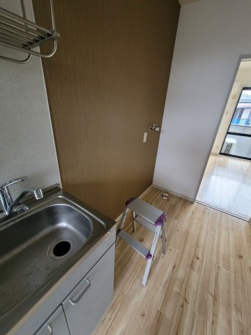 キッチンの横に冷蔵庫置き場と、室内洗濯機置き場があります。